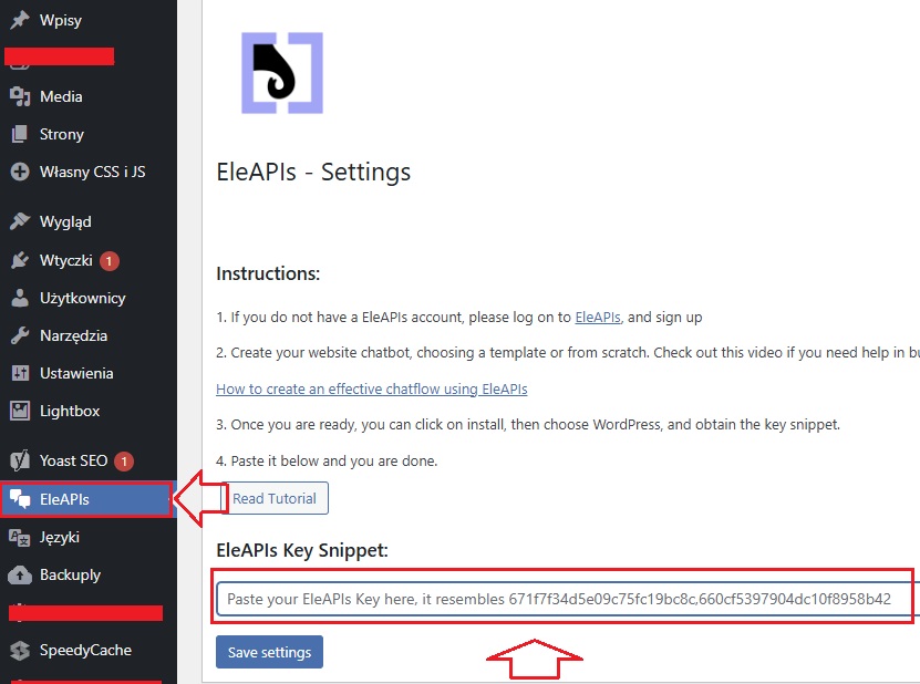 - Otwórz ustawienia wtyczki EleAPIs w panelu WordPress.